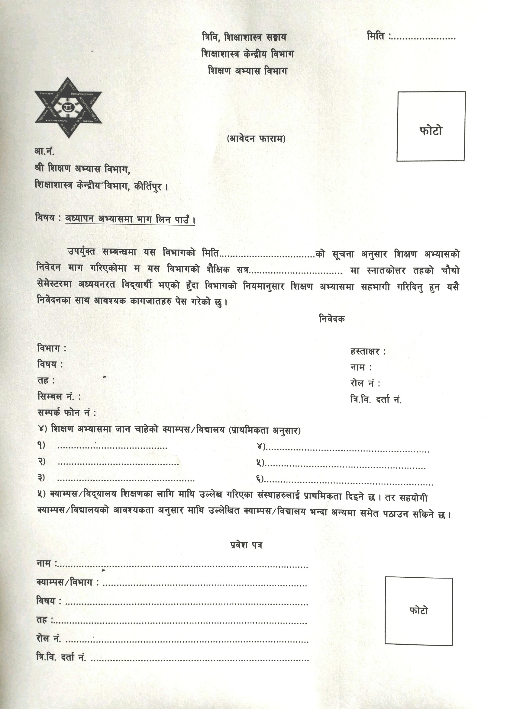 M.Ed and MSSEd प्रथम सेमेष्टरकाे परीक्षा फाराम भर्ने सम्बन्धी सूचना ।