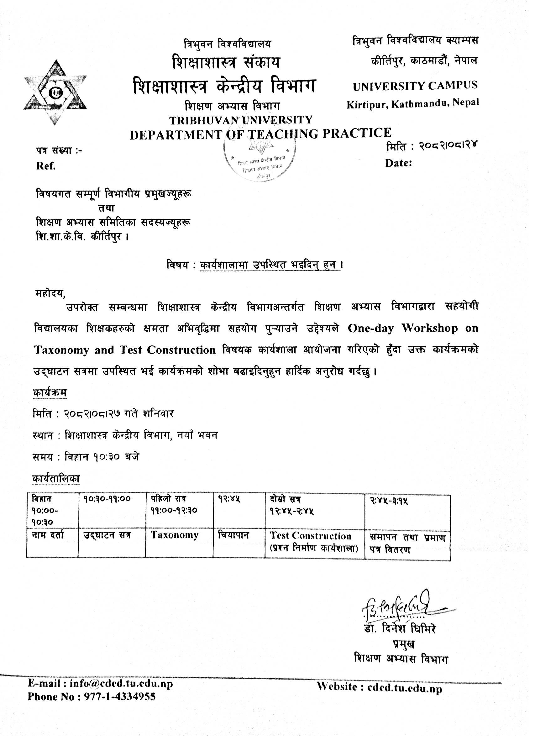 Tribhuvan University, Faculty of Education, Central Department of Education, Kritipur, Kathmandu