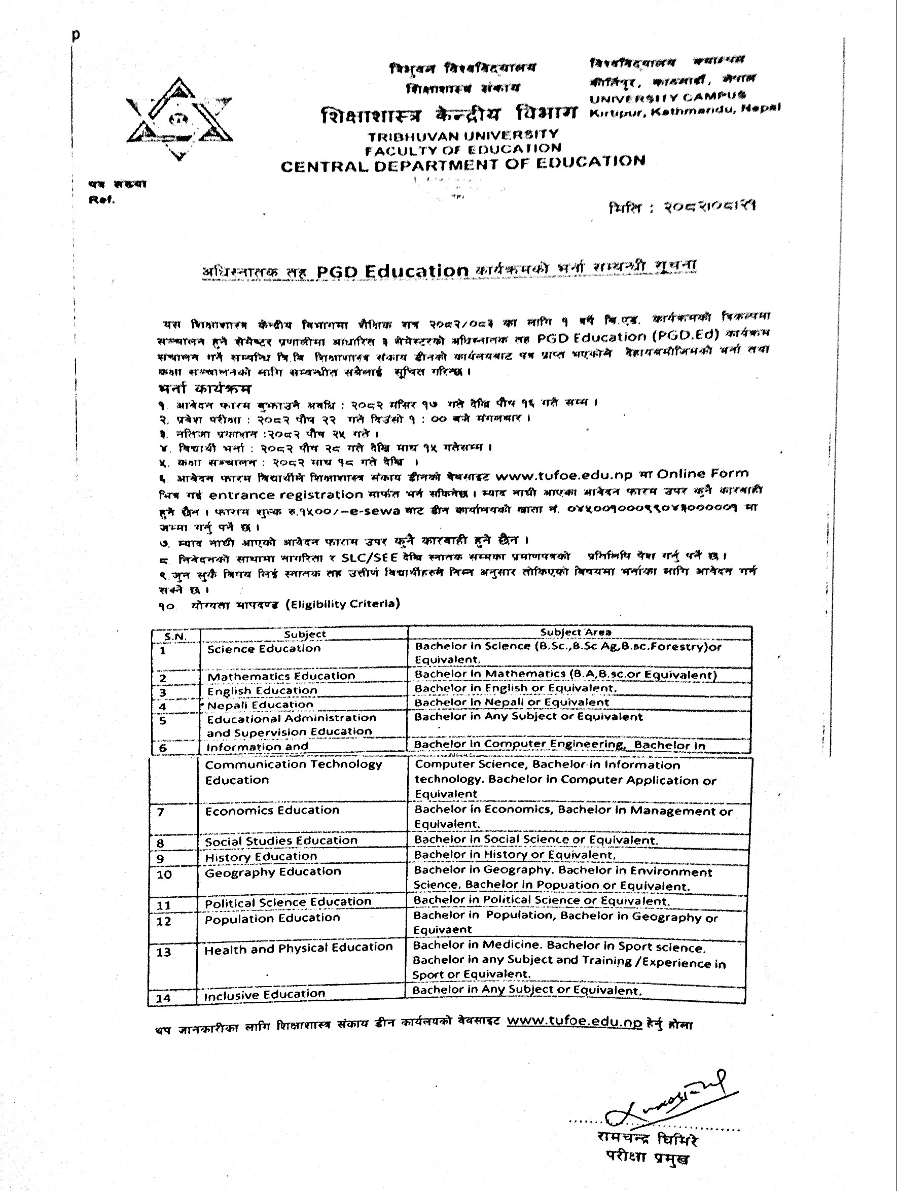 अधिस्नातक तह PGD Education कार्यक्रमकाे भर्ना सम्बन्धी सूचना ।