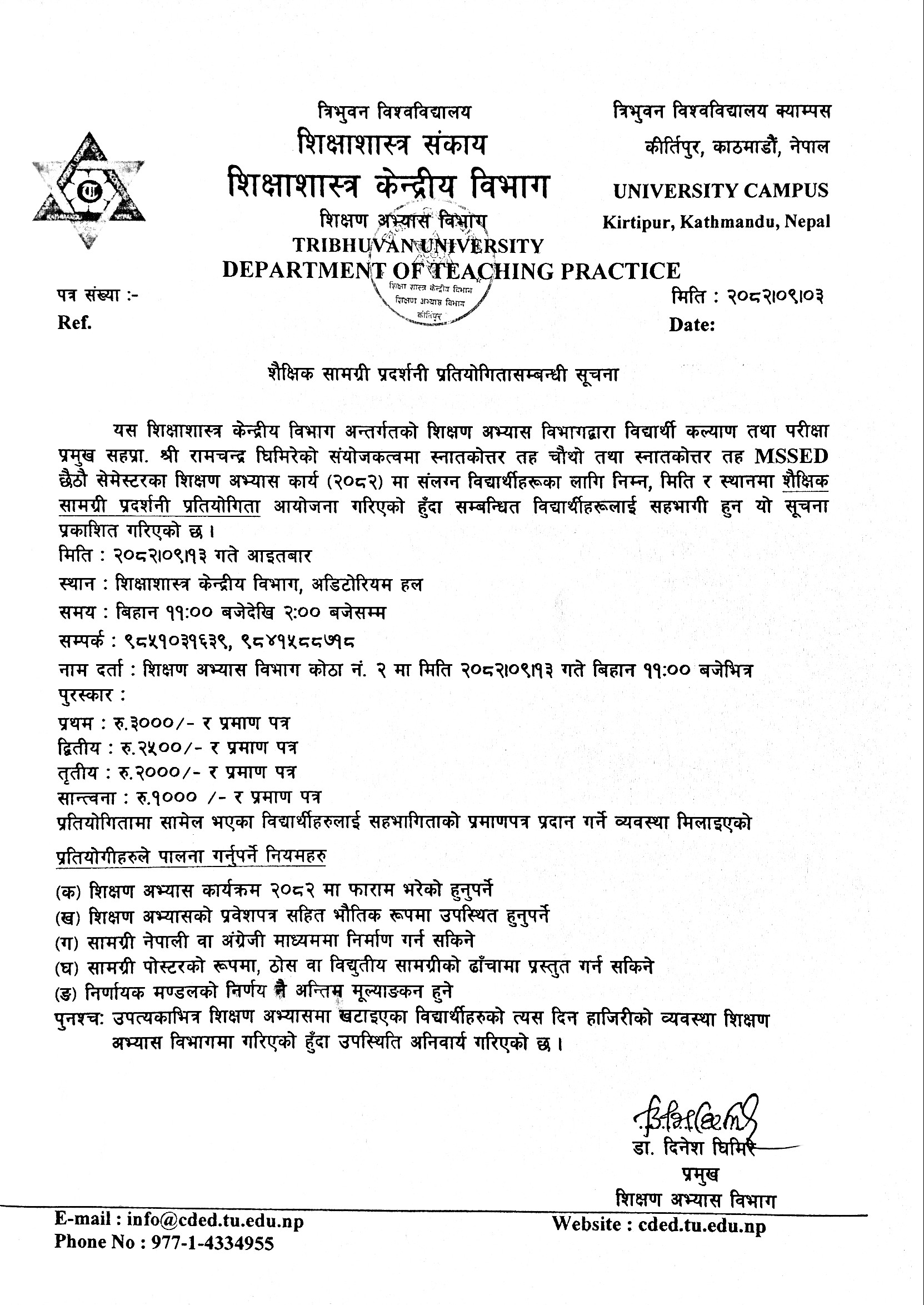 M.Ed and MSSEd प्रथम सेमेष्टरकाे परीक्षा फाराम भर्ने सम्बन्धी सूचना ।