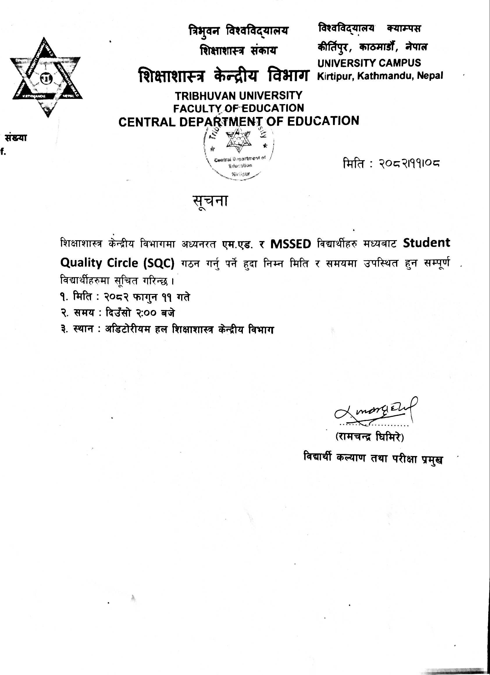 Tribhuvan University, Faculty of Education, Central Department of Education, Kritipur, Kathmandu