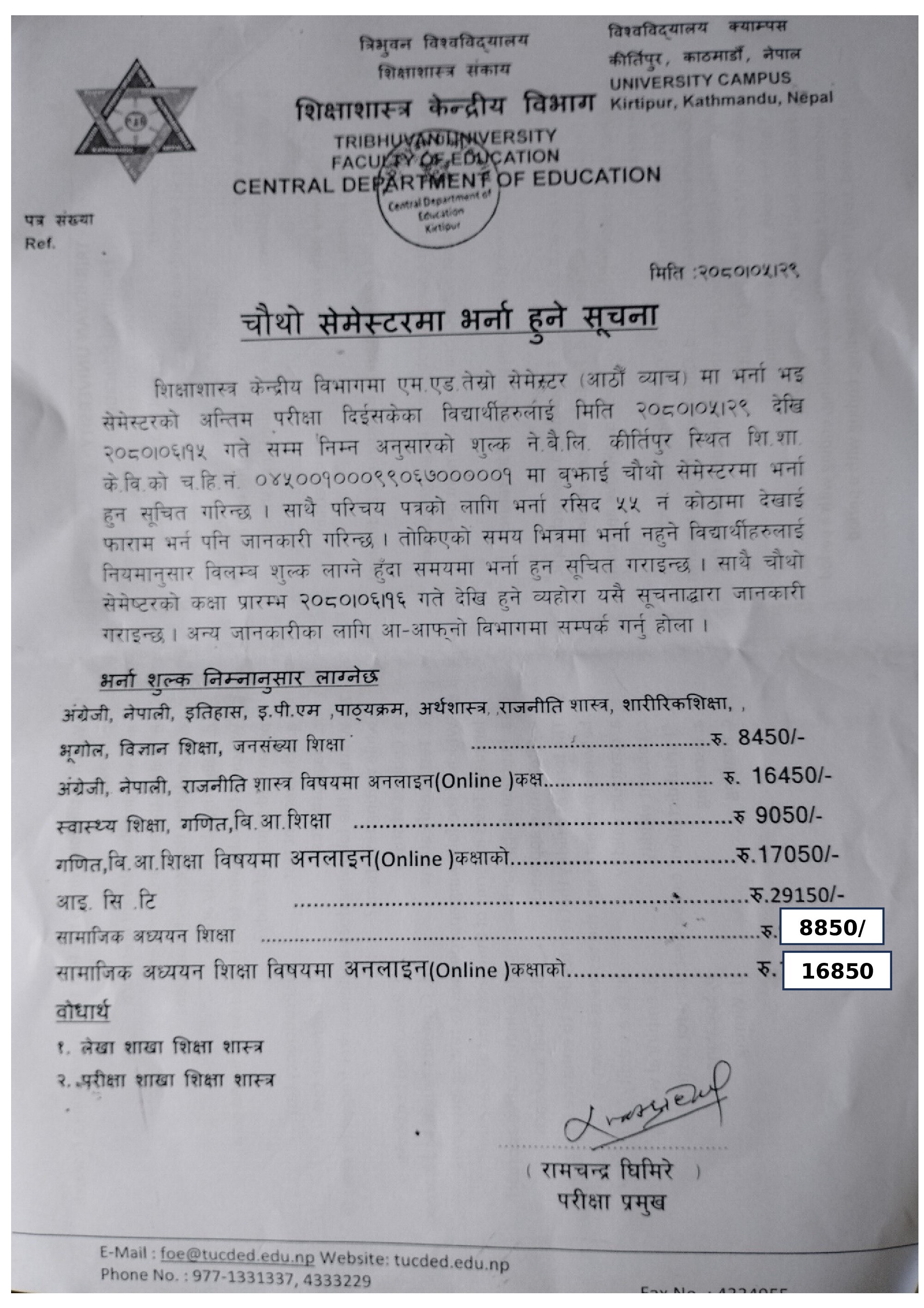 M.Ed and MSSEd प्रथम सेमेष्टरकाे परीक्षा फाराम भर्ने सम्बन्धी सूचना ।