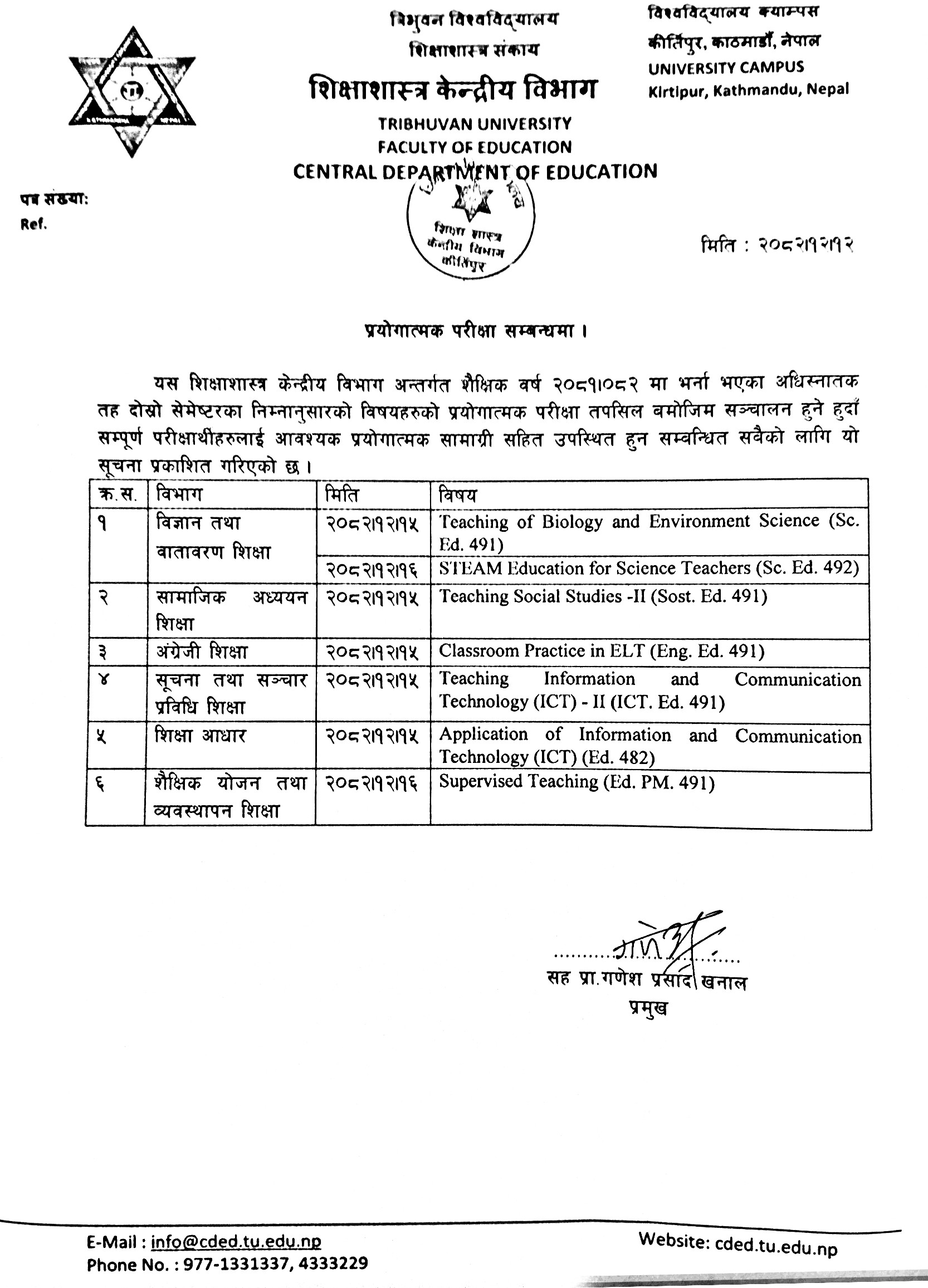 अधिस्नातक तह (PGDE) दाेस्राे सेमेष्टरकाे प्रयाेगात्मक परीक्षा सम्बन्धी सूचना ।