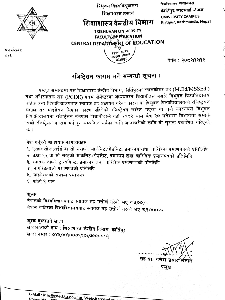 M.Ed र MSSEd. तेस्राे सेमेष्टरकाे परीक्षा फाराम आव...