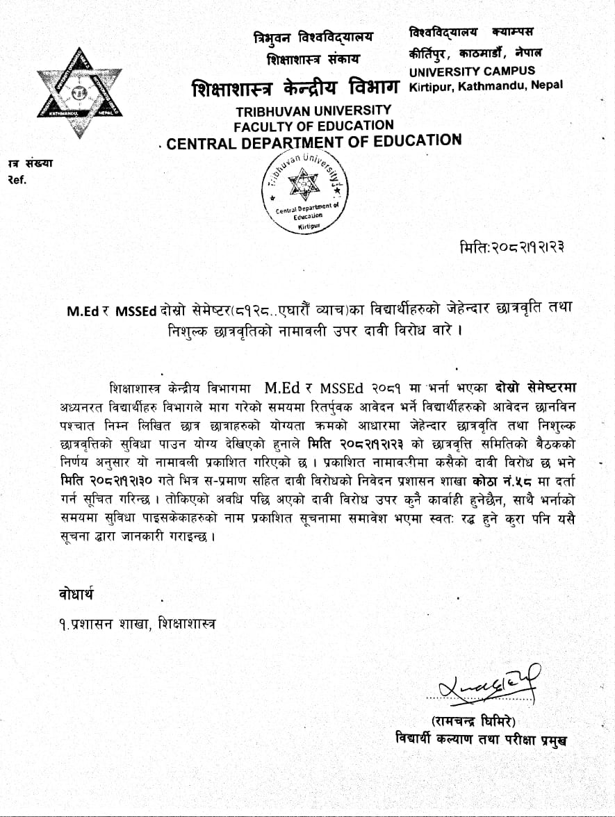 नामावली लिष्ट facebook मा हेर्नुहाेला ।