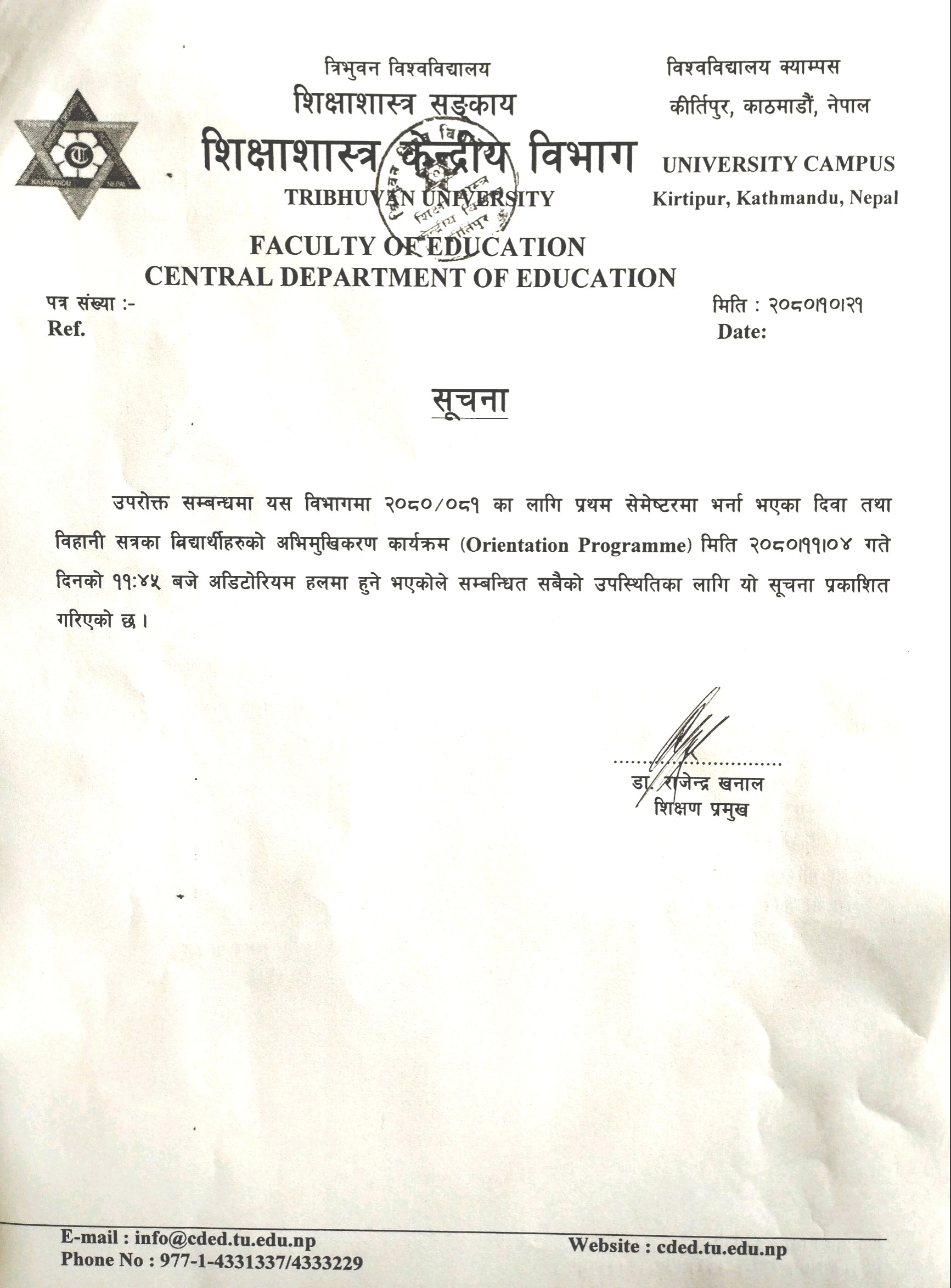 Tribhuvan University, Faculty of Education, Central Department of Education, Kritipur, Kathmandu
