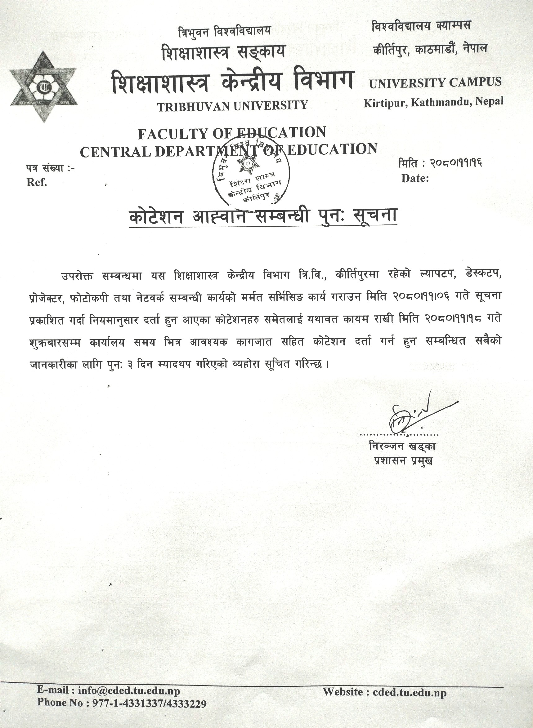 कोटेशन आह्वान सम्बन्धी पुनः सूचना