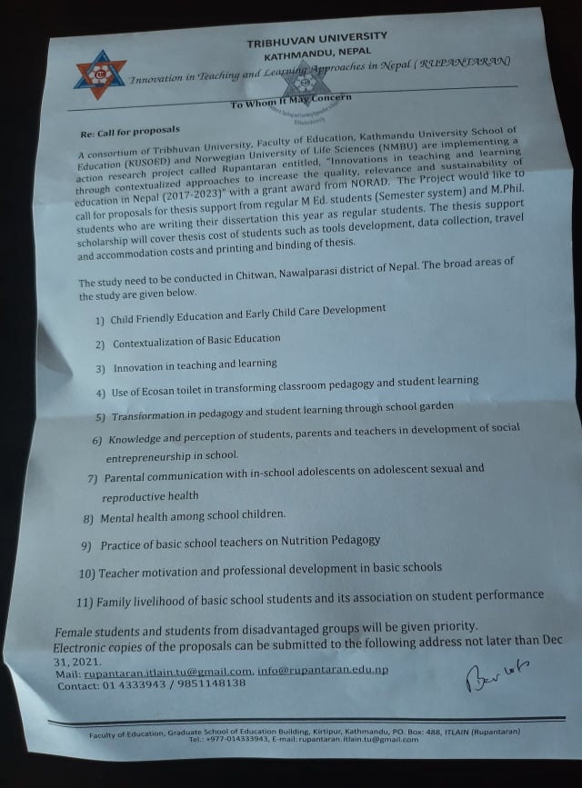 M.Ed र MSSEd दाेस्राे सेमेष्टरका विद्यार्थीहरुकाे...