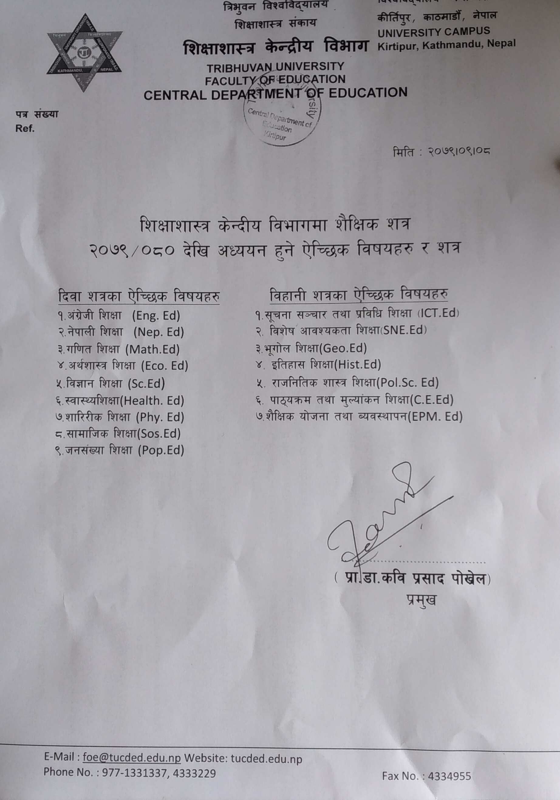 M.Ed र MSSEd तेस्राे सेमेष्टर (८०२८.........) का...