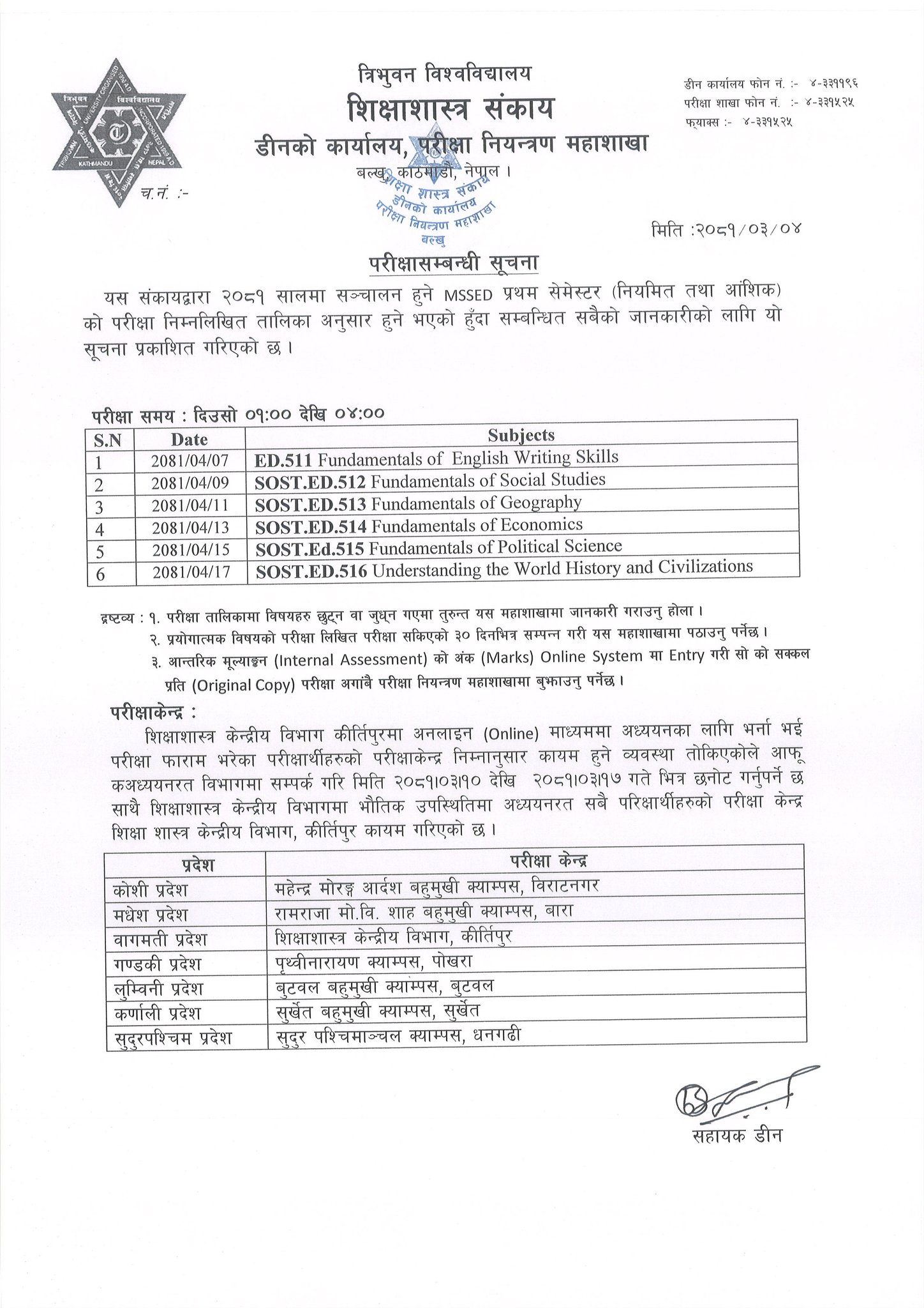 M.Ed. (MSSEd) 1st Semester Examination Routine 2081