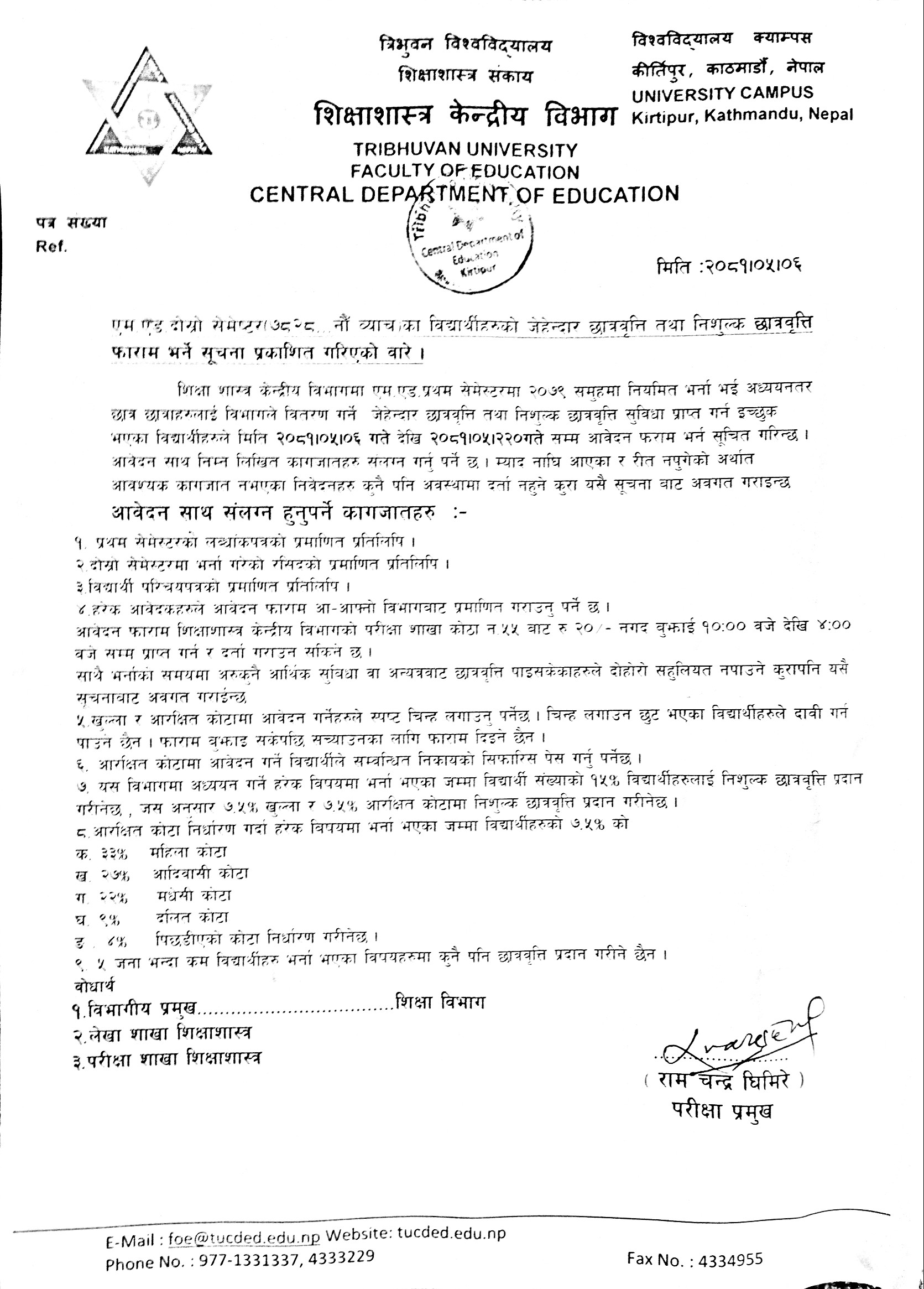 एम.एड.दोस्रो सेमेष्टरका विद्यार्थीहरुको लागि छात्रवृत्ति फाराम भर्ने सम्बन्धी सूचना