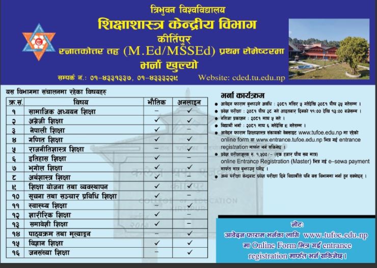 शिक्षाशास्त्र केन्द्रीय विभाग, त्रि.वि. कीर्तिपुरमा ०८१/०८२ एम.एड. प्रथम वर्षकाे भर्ना सम्बन्धि सूचना