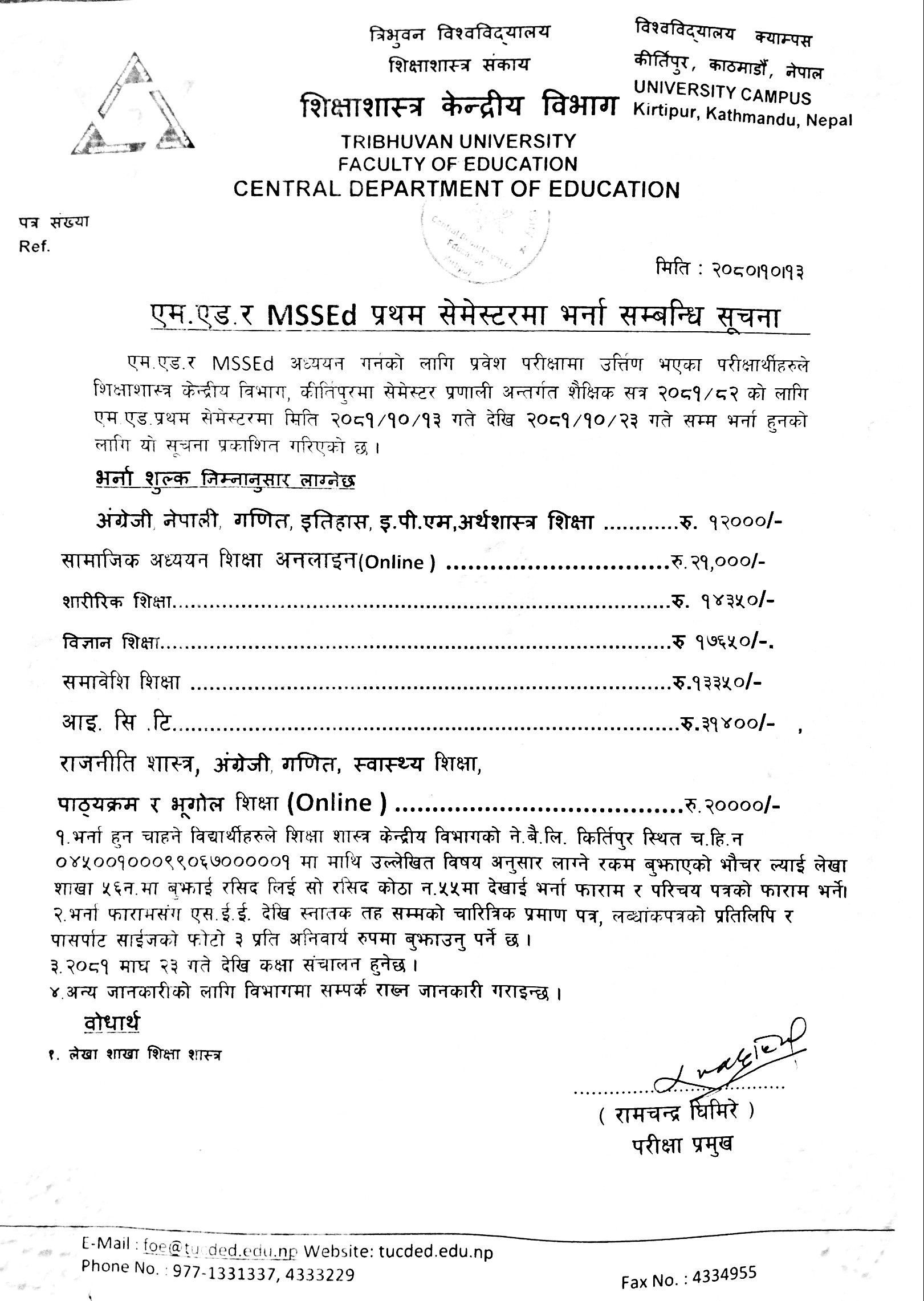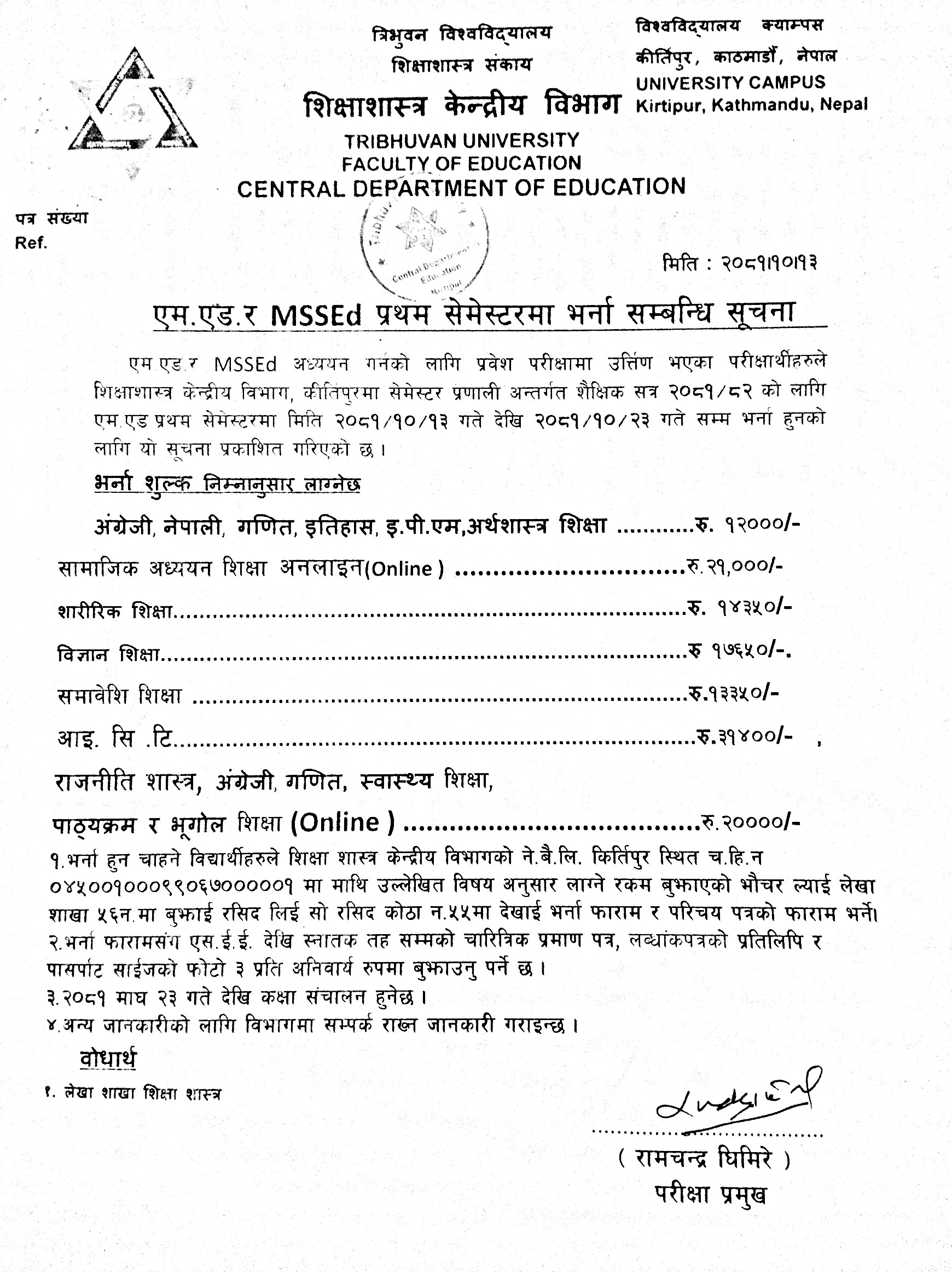 एम.एड. र MSSEd. प्रथम सेमेष्टरमा भर्ना सम्बन्धि सूचना