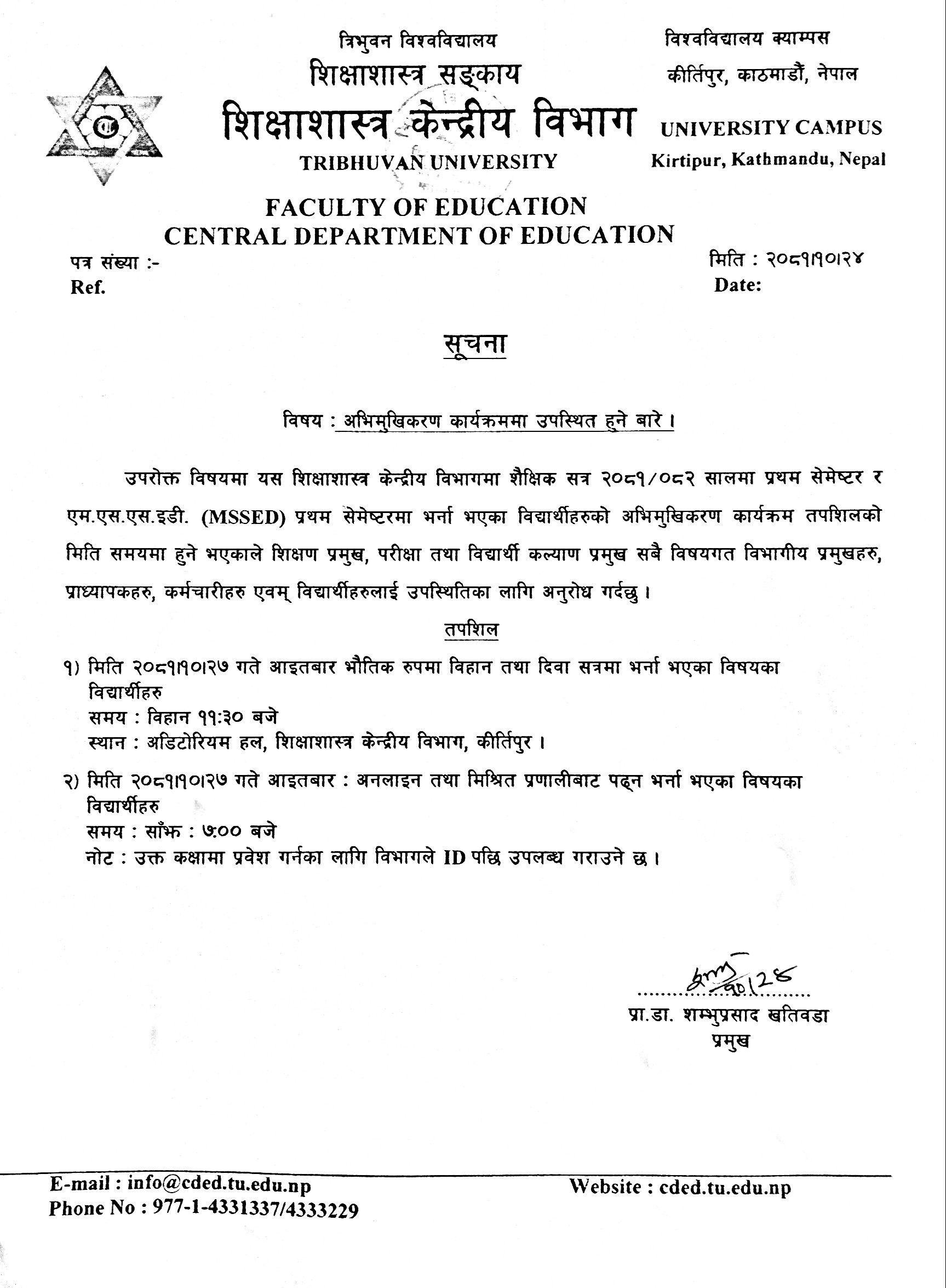 M.Ed and MSSEd प्रथम सेमेष्टरकाे परीक्षा फाराम भर्ने सम्बन्धी सूचना ।