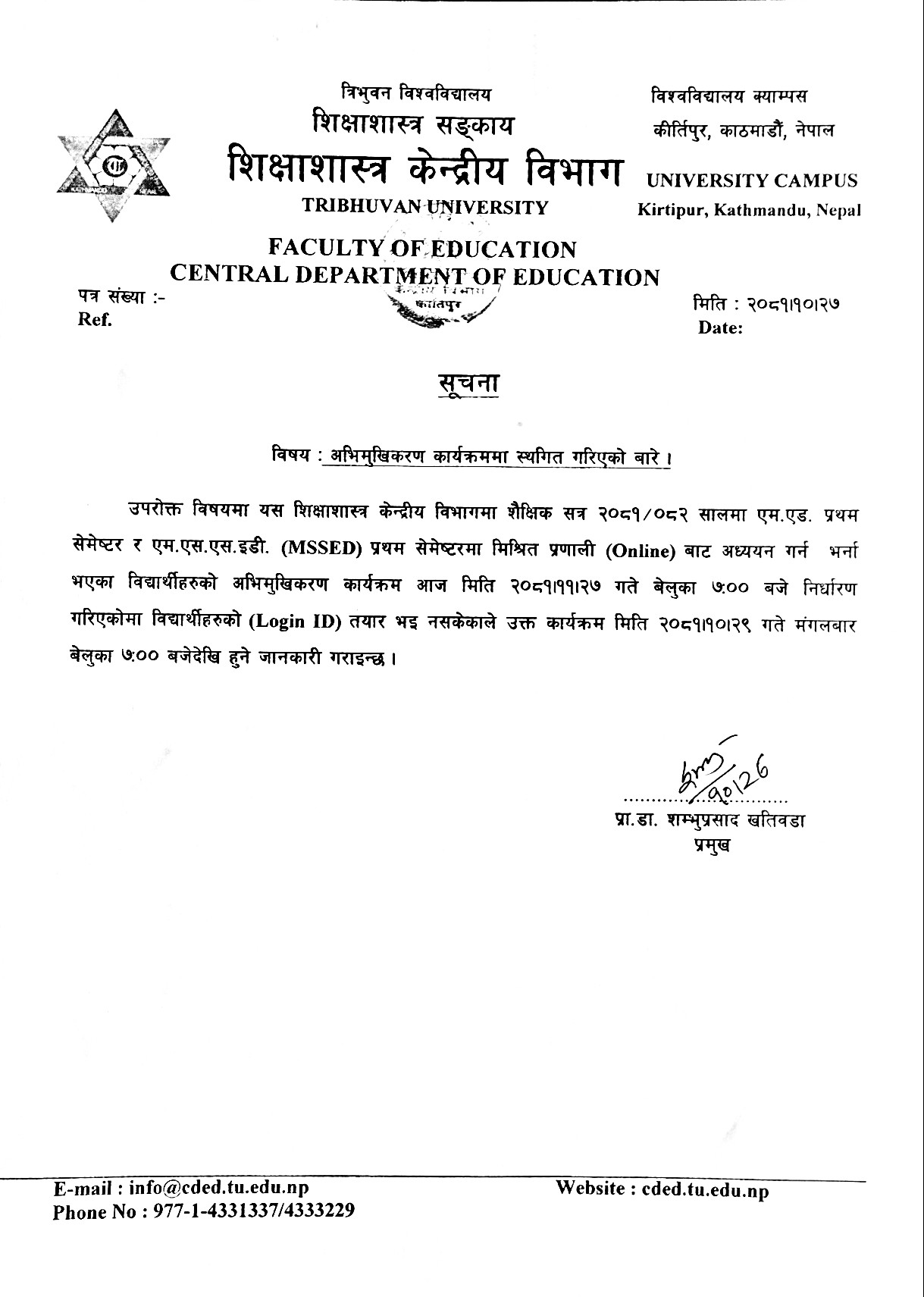 Tribhuvan University, Faculty of Education, Central Department of Education, Kritipur, Kathmandu