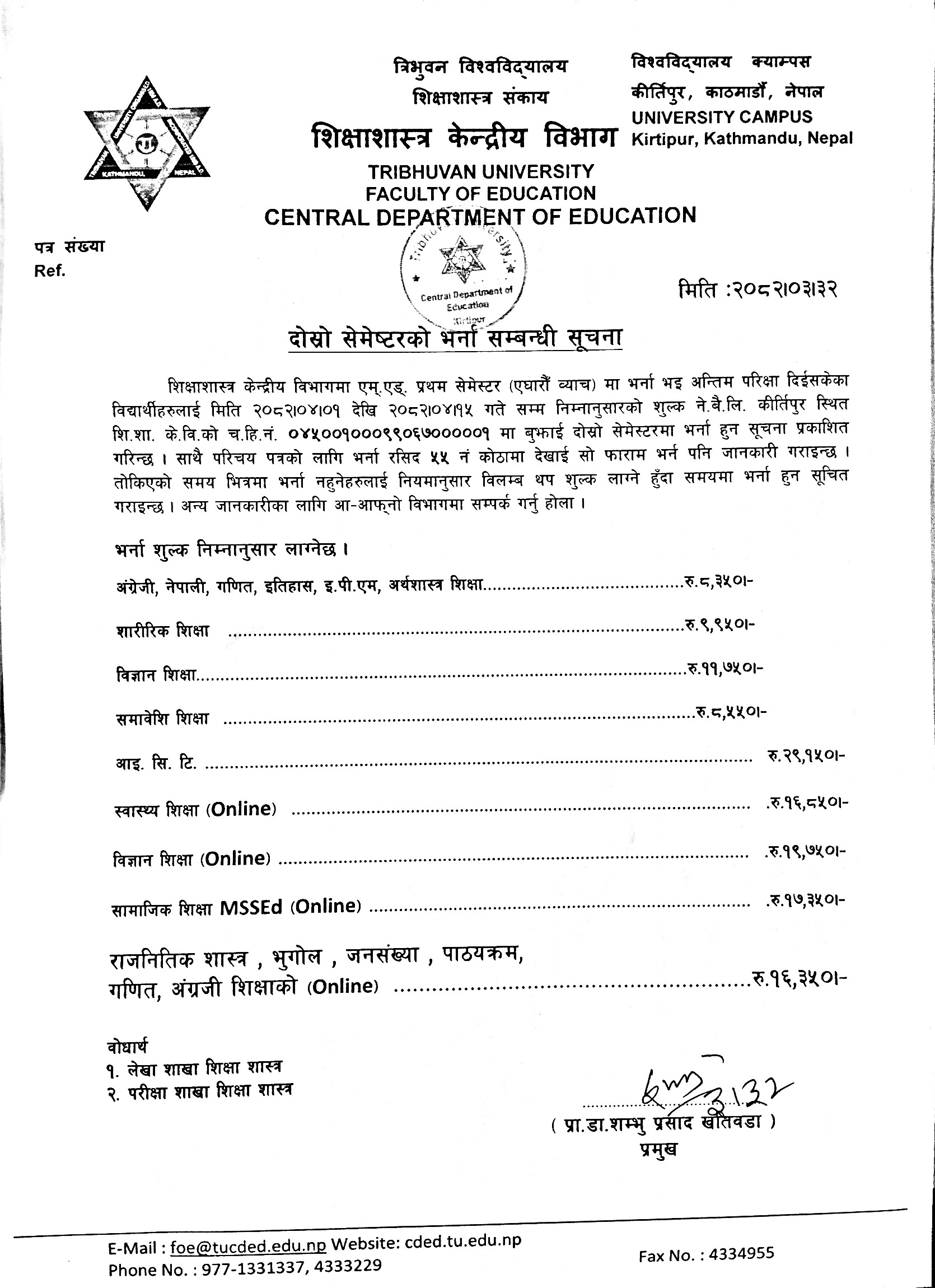 M.Ed and MSSEd प्रथम सेमेष्टरकाे परीक्षा फाराम भर्ने सम्बन्धी सूचना ।