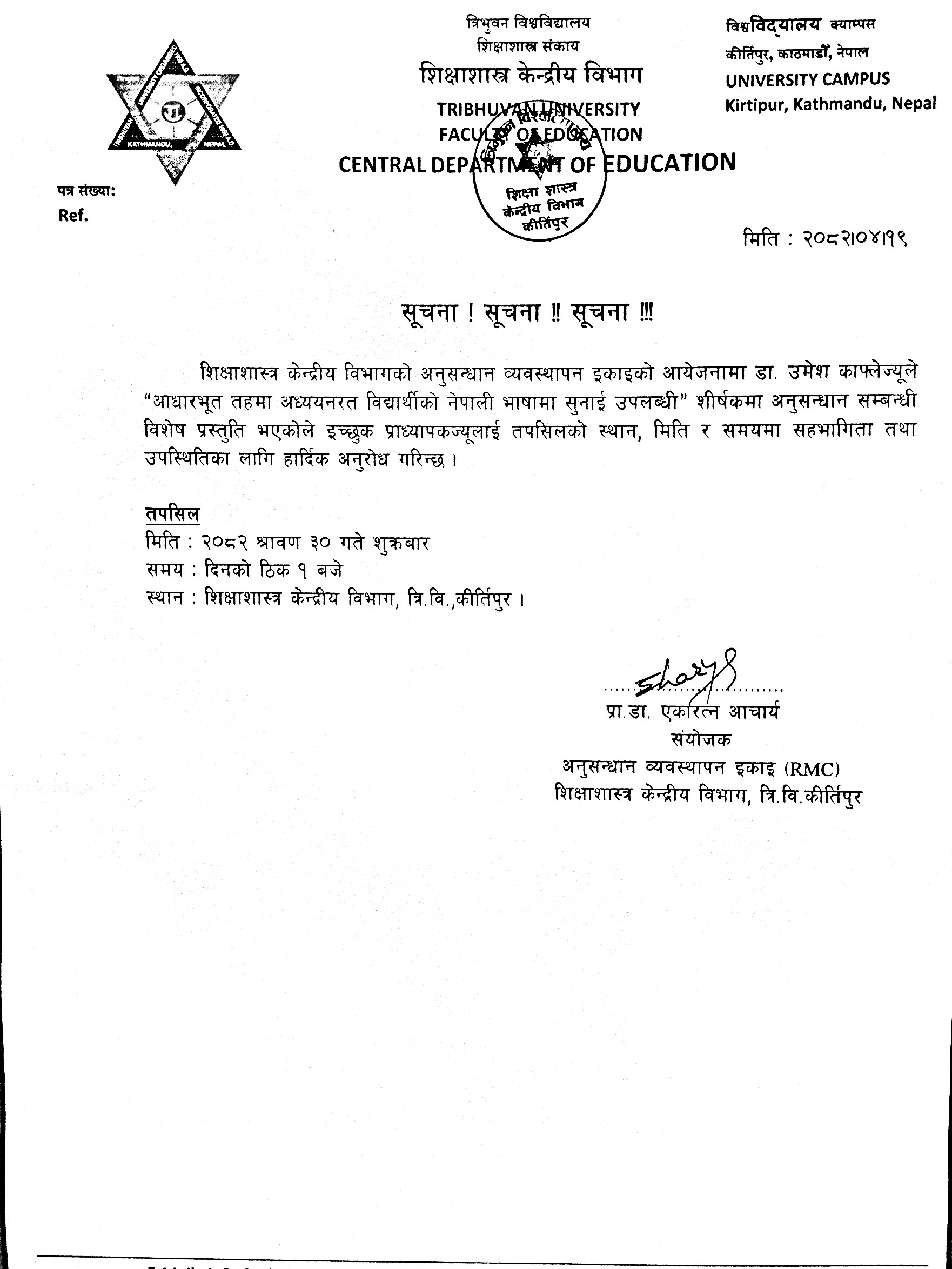 Tribhuvan University, Faculty of Education, Central Department of Education, Kritipur, Kathmandu