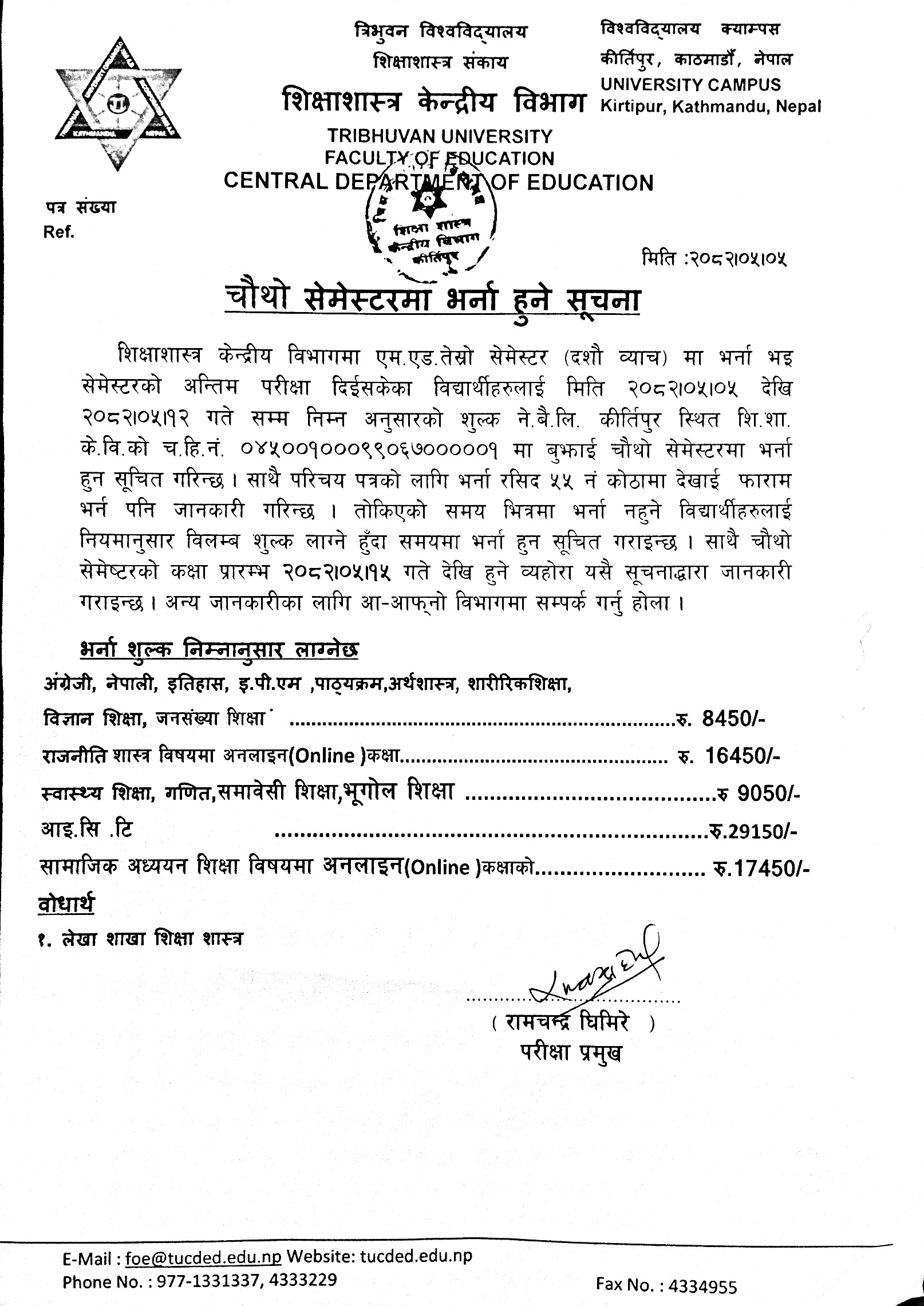 M.Ed and MSSEd प्रथम सेमेष्टरकाे परीक्षा फाराम भर्ने सम्बन्धी सूचना ।