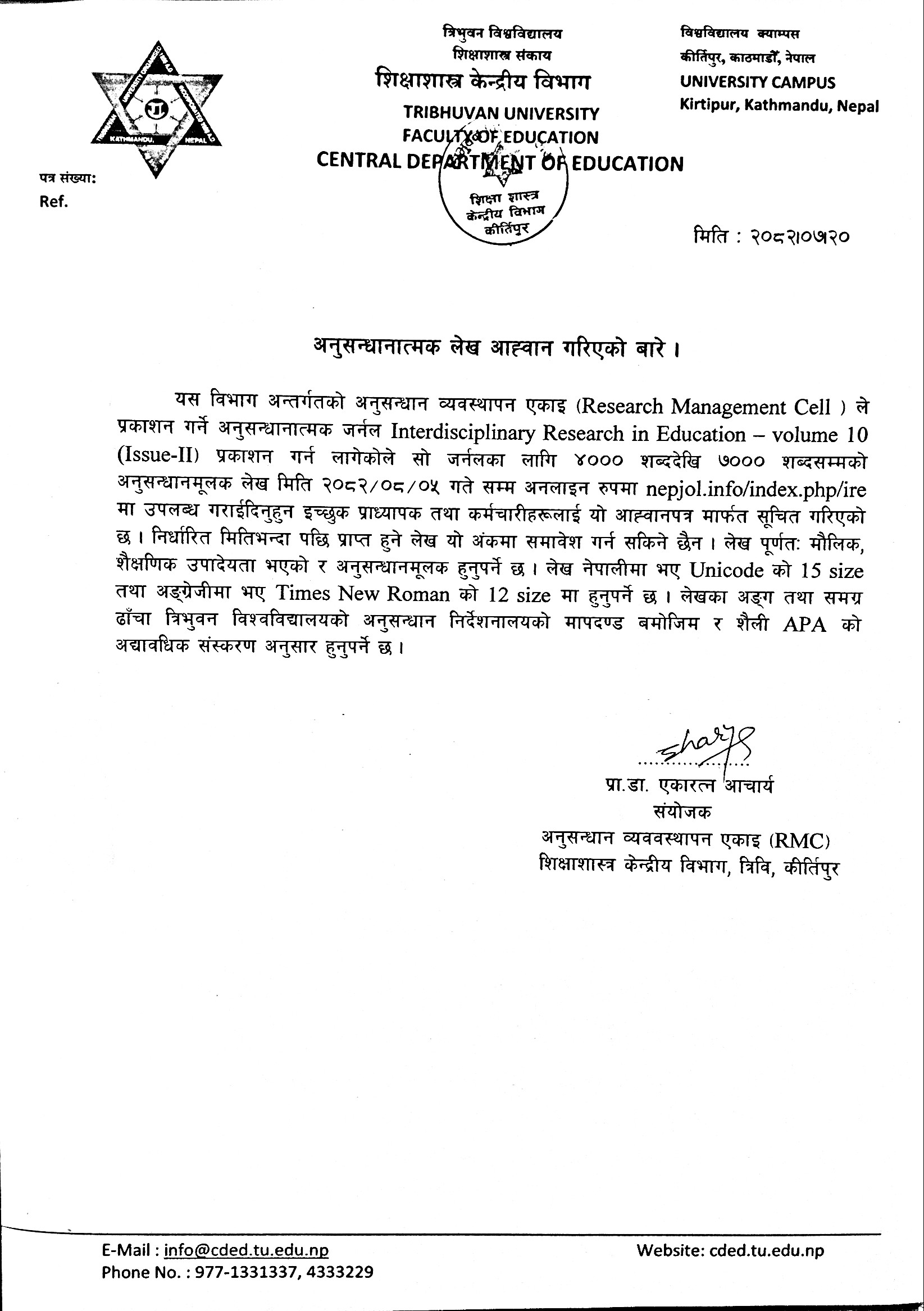 अनुसन्धानात्माक लेख आह्वान गरिएकाे बारे ।